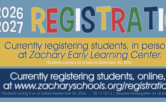 “Zachary Early Learning Center (PreK) is currently registering students in person at ZELC, and Northwestern Elementary School (K) is currently registering students online, both for the 2026-2027 school year.” Please note that the state of Louisiana requires that students attend Kindergarten. 2025-2026 ZELC PreK students are automatically enrolled in Kindergarten at NES […]