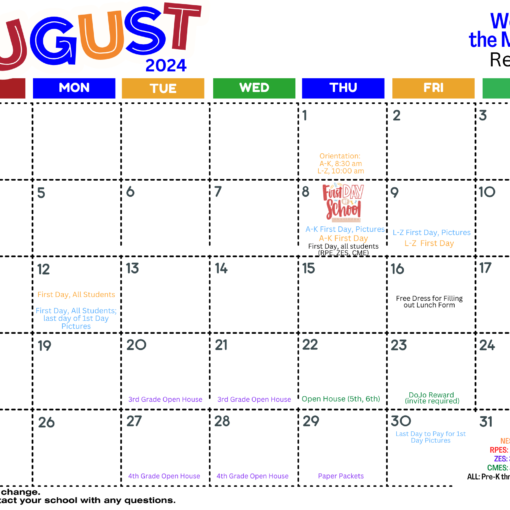 Parents: Please use our Pre-K through 6th grade activities calendar as a quick reference for the month of August. #WeAreZacharyhttps://www.zacharyschools.org/Documents/Parents_and_Students/ZCSD_ElementaryEvents_Aug2024.pdf