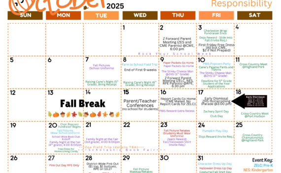 Parents: Please use our Pre-K through 6th grade activities calendar as a quick reference for the month of October.#WeAreZachary