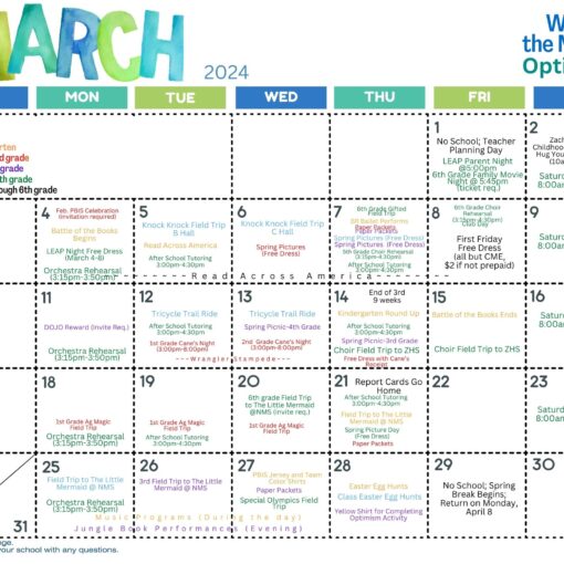 Parents: Please use our Pre-K through 6th grade activities calendar as a quick reference for the month of March. #wearezacharyhttps://www.zacharyschools.org/Documents/Parents_and_Students/ZCSD_MarchEvents_Elementary.pdf