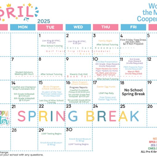 Parents: Please use our Pre-K through 6th grade activities calendar as a quick reference for the month of April. #WeAreZachary http://www.zacharyschools.org/Documents/Parents_and_Students/April_2025EventsCalendar.pdf