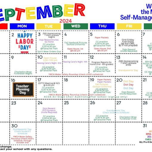 Parents: Please use our Pre-K through 6th grade activities calendar as a quick reference for the month of September. #WeAreZacharyhttps://www.zacharyschools.org/Documents/Parents_and_Students/ZCSD_ElementaryEventsSept2024.pdf
